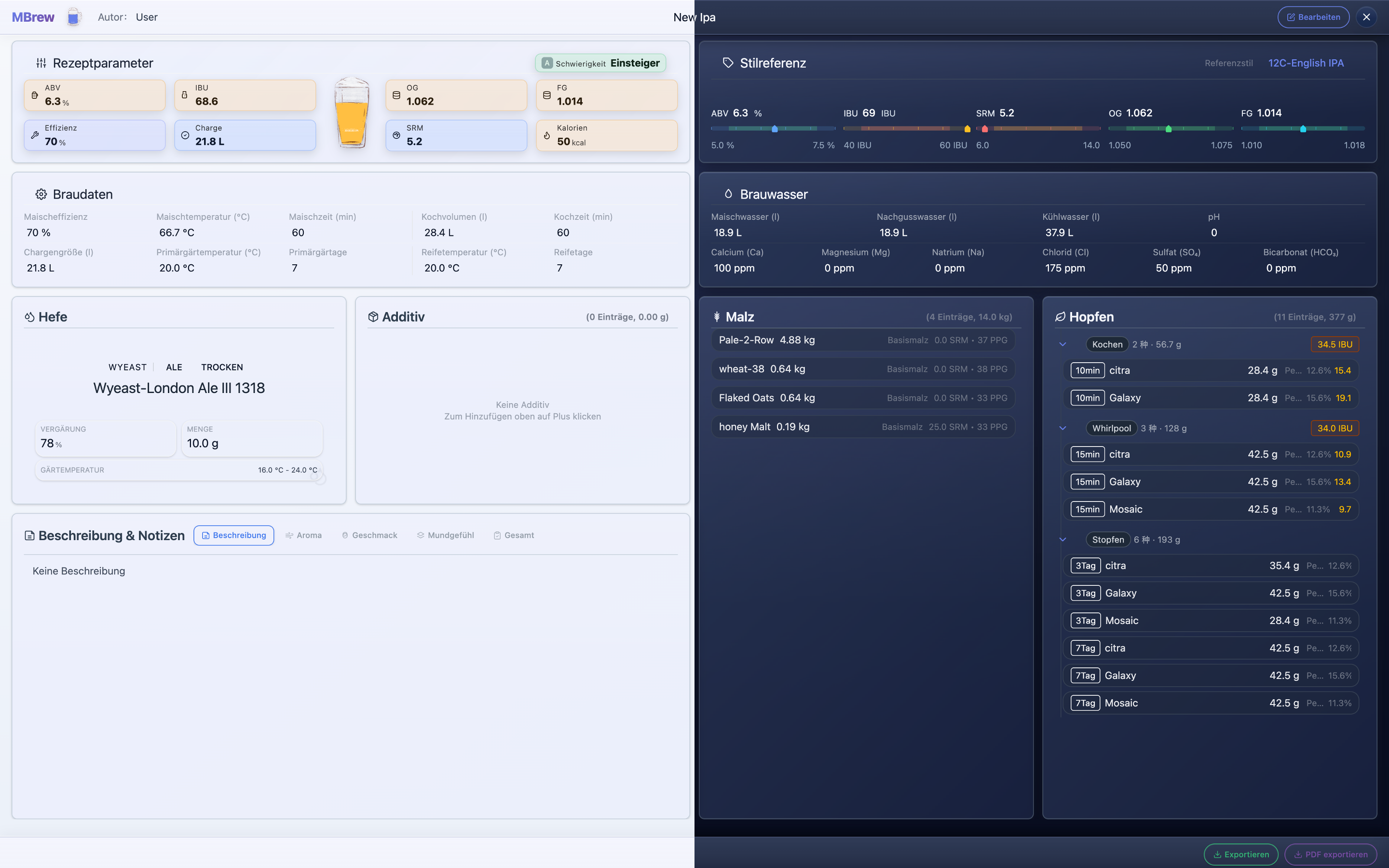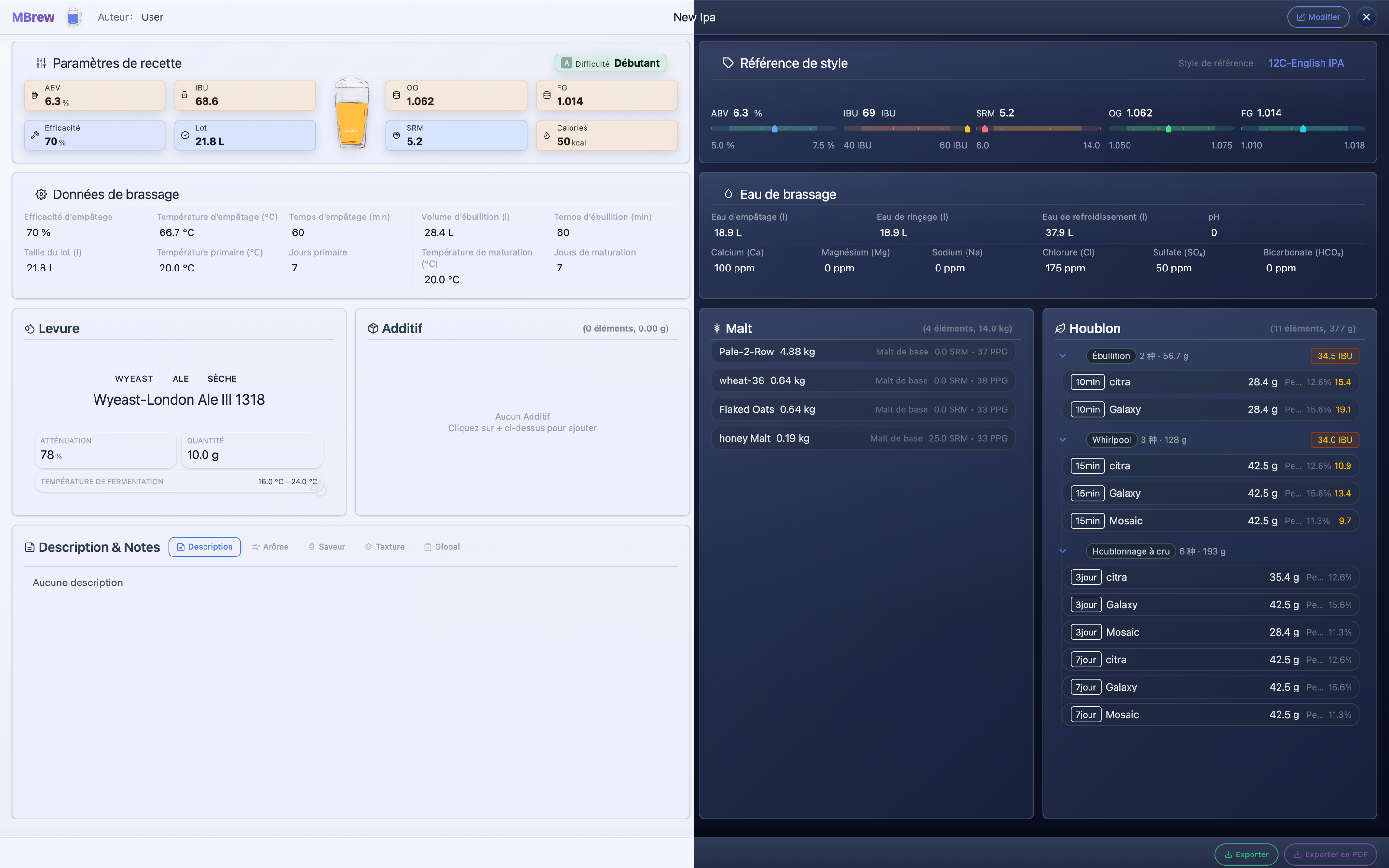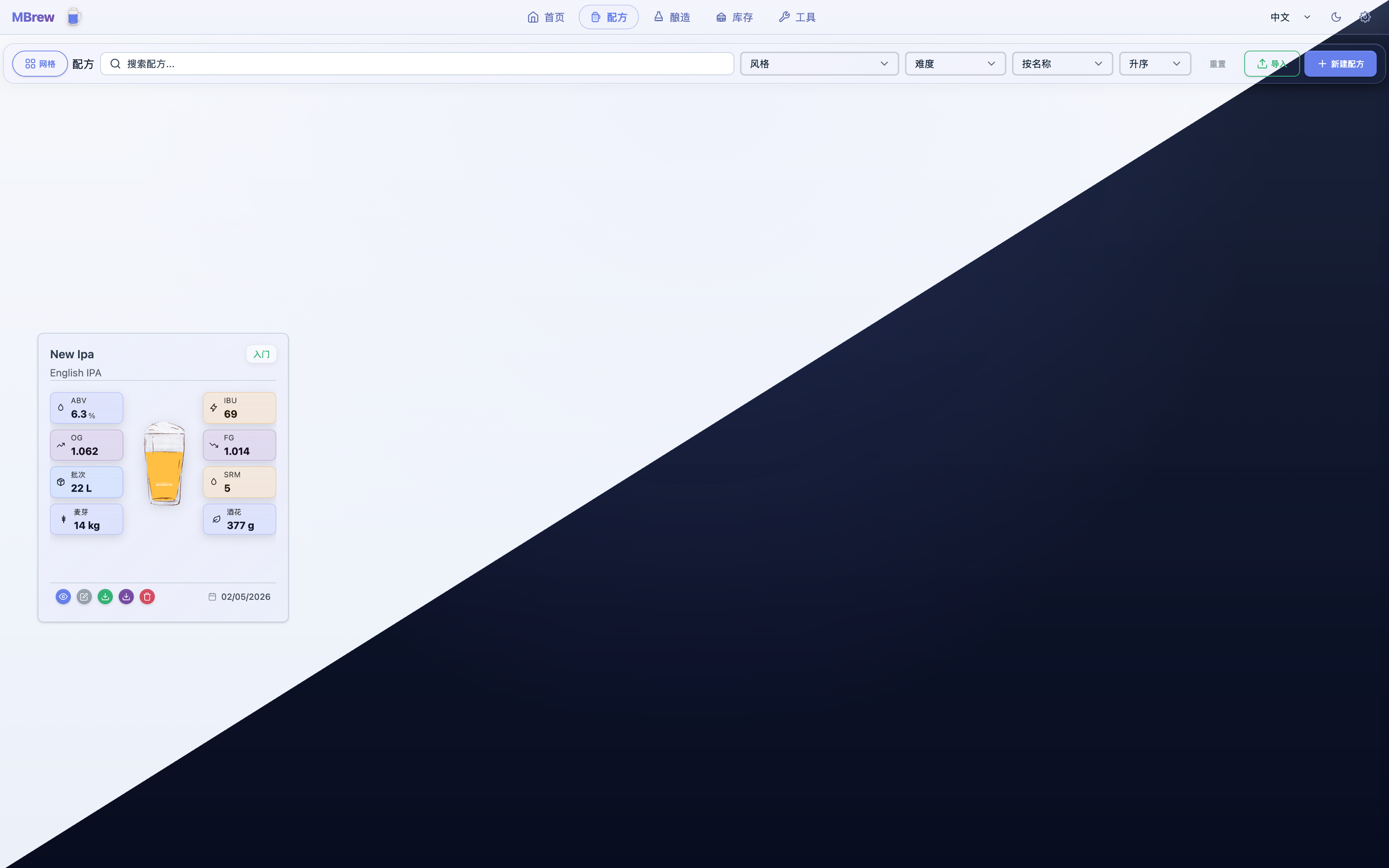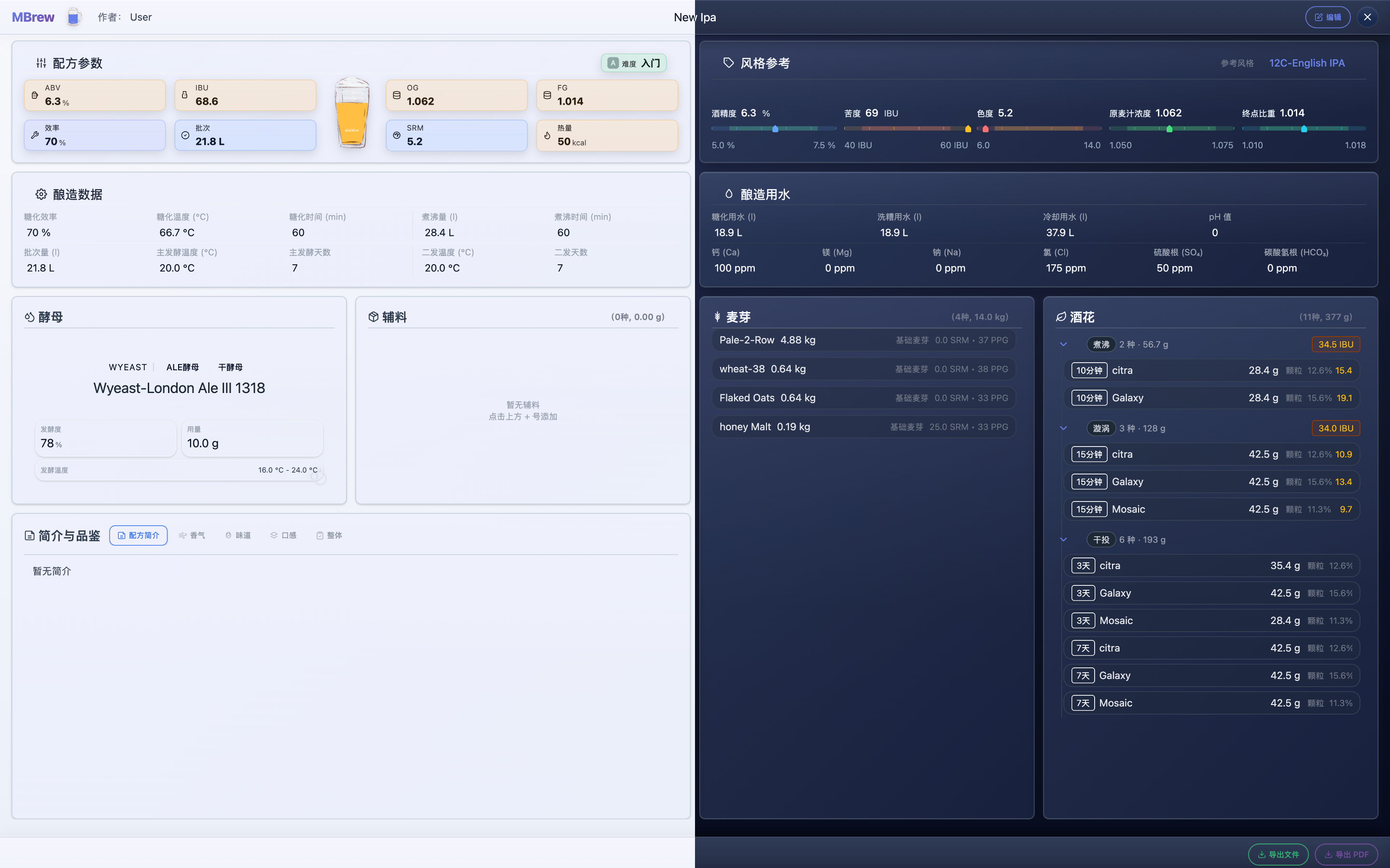 - Smart recipe design with BJCP style guidance and real-time OG/FG/ABV/IBU/SRM calculations