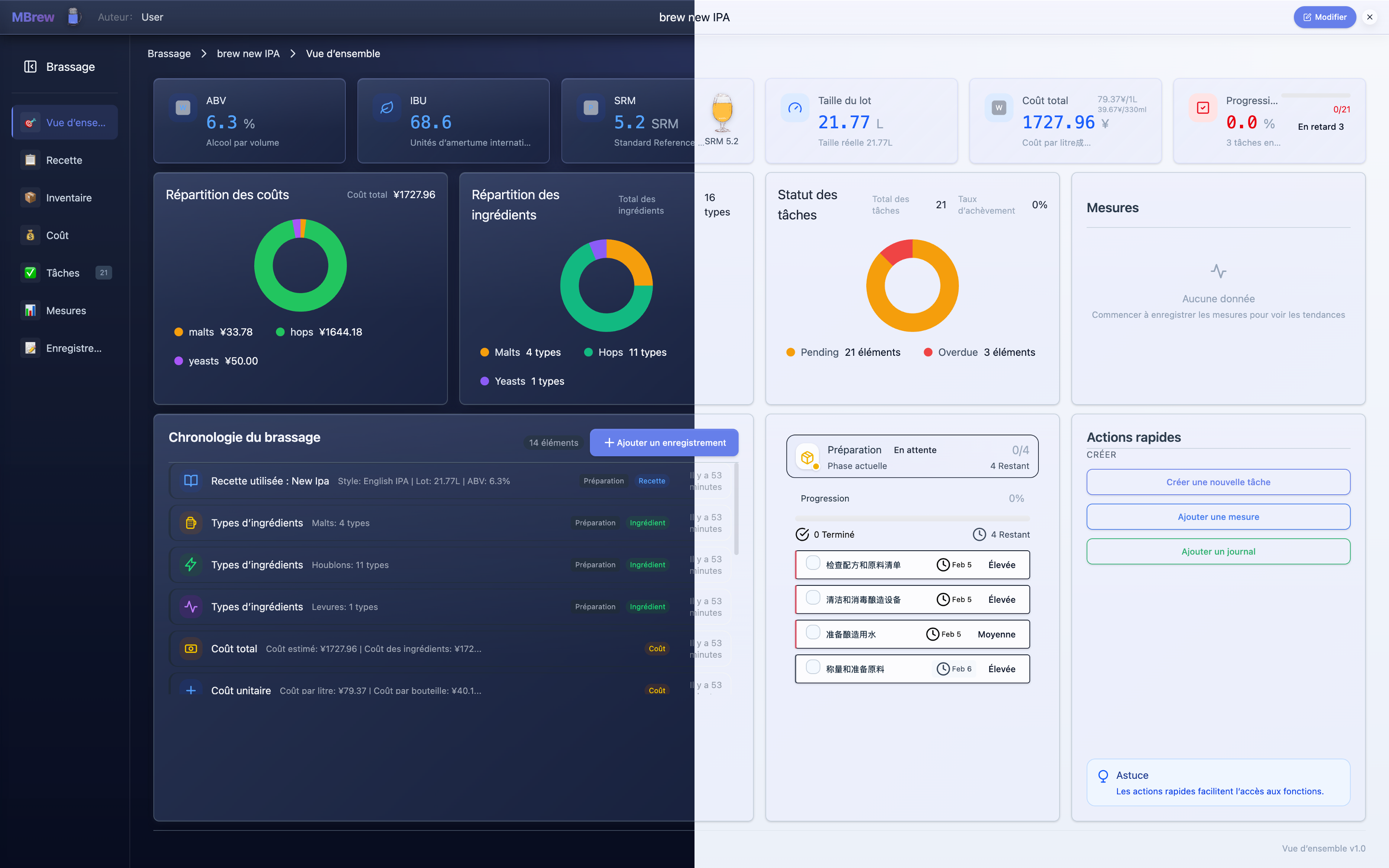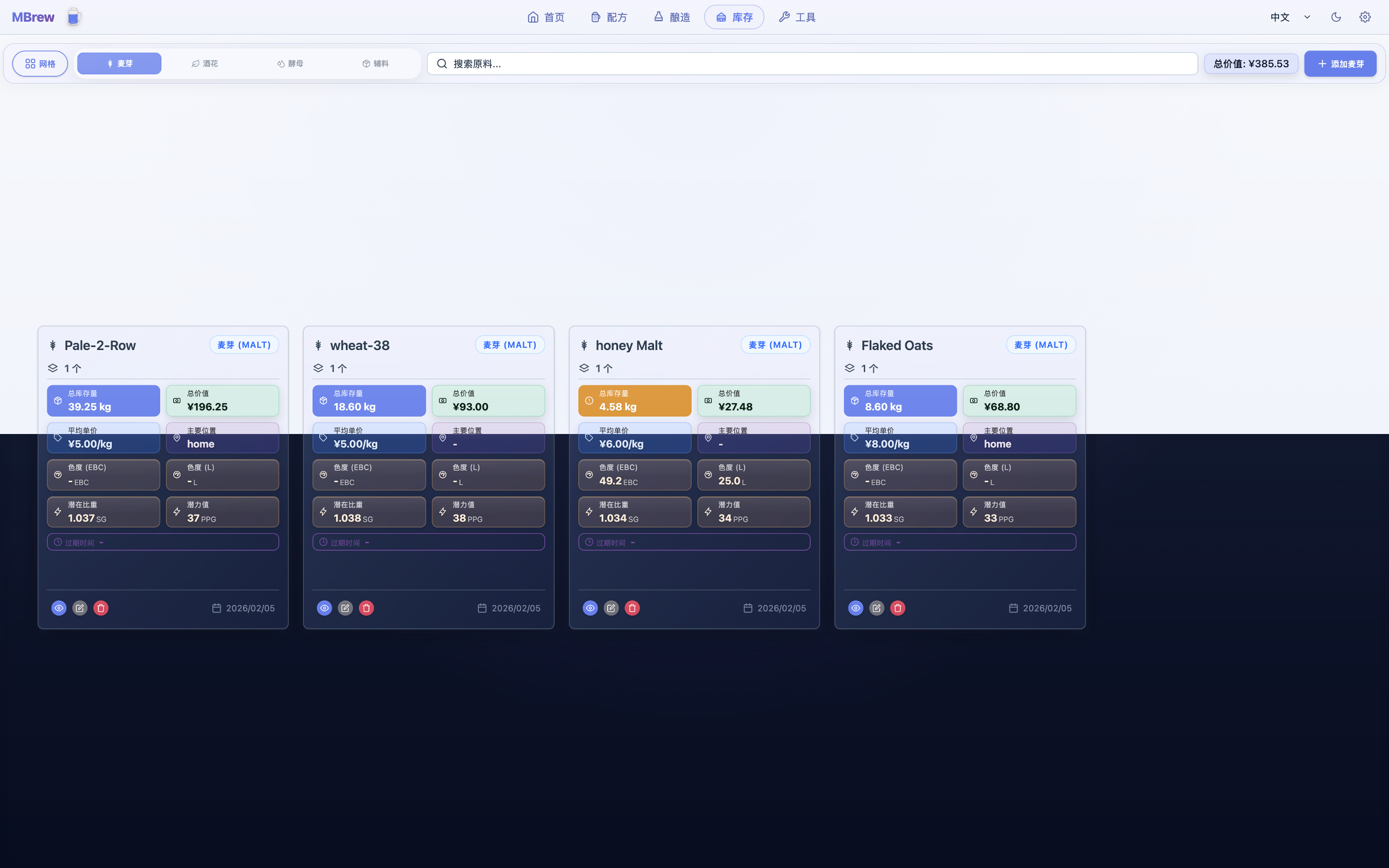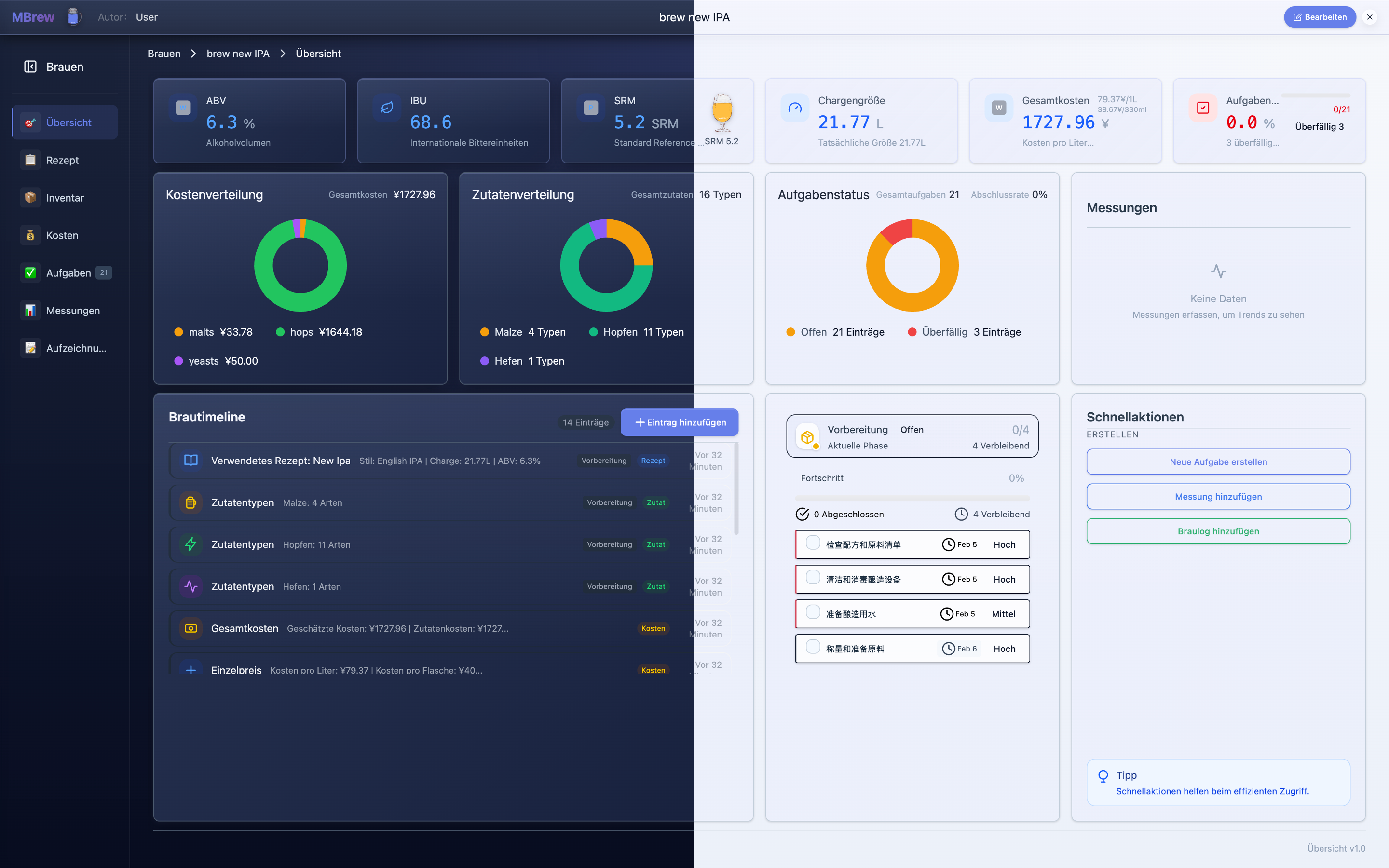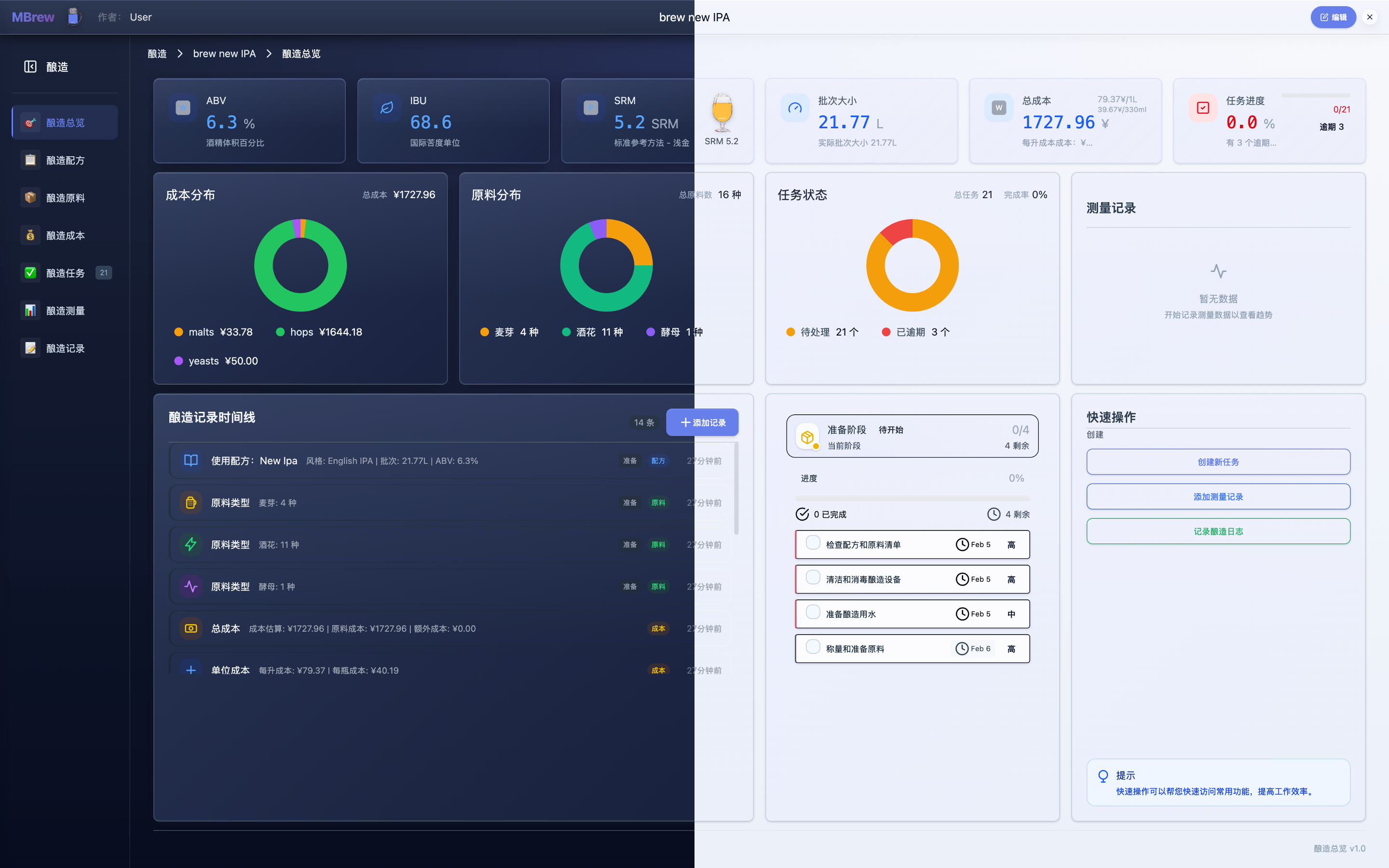 - Visual analytics for fermentation trends, inventory changes, and cost breakdowns