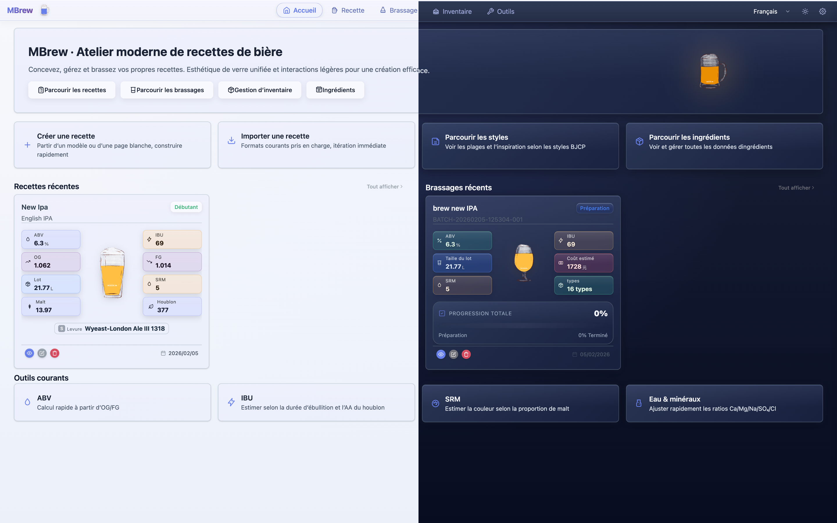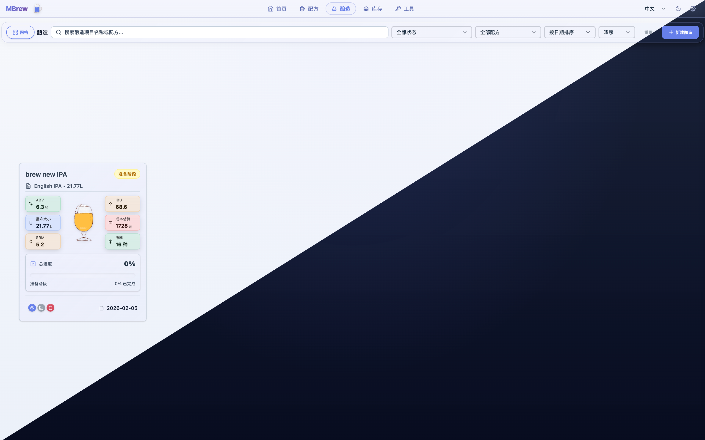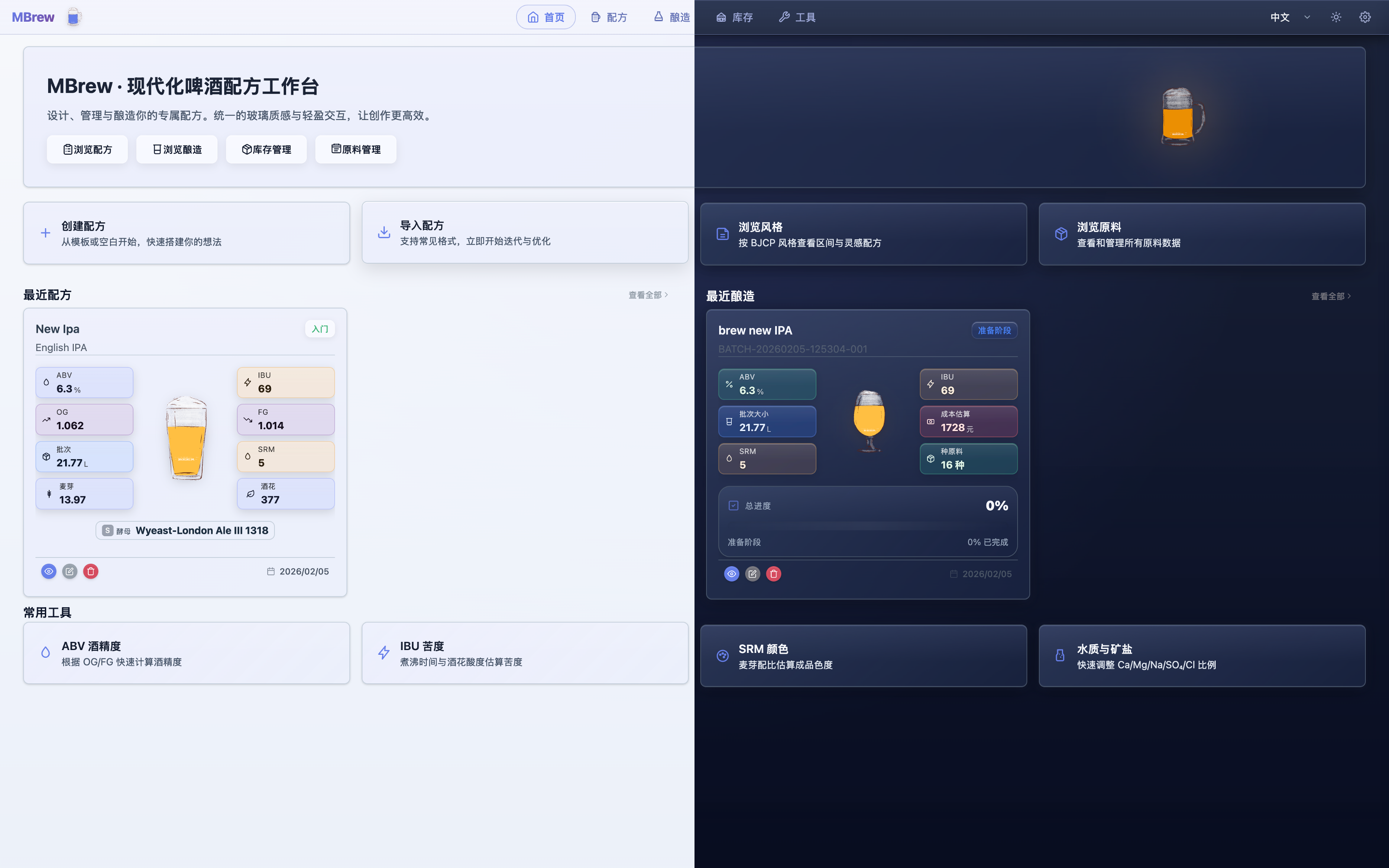 MBrew is a local-first brewing companion for craft beer enthusiasts and professional brewers. It combines recipe design, key brewing calculations, end-to-end batch tracking, and visual analytics into one workflow so you can reliably hit your target profile and reproduce your best batches.